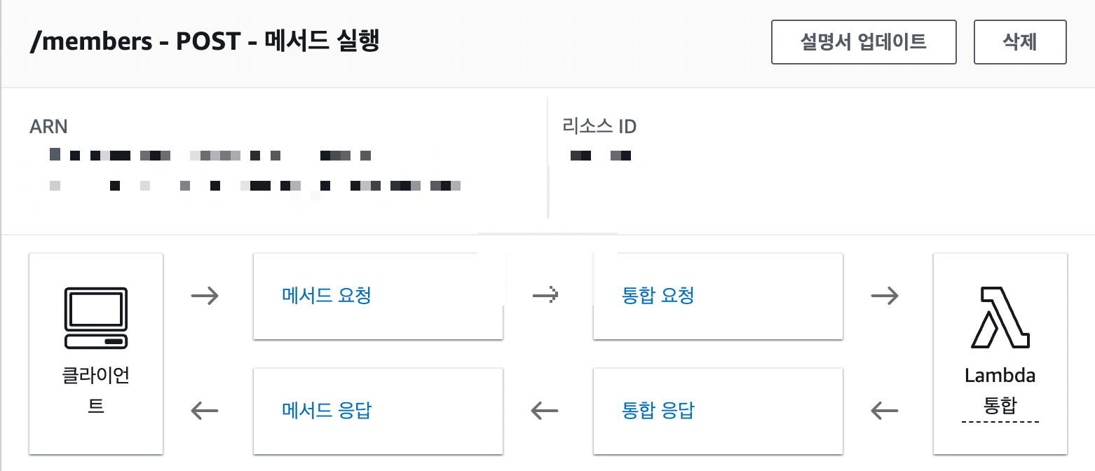 : 만든 API > 리소스 > 리소스 생성 > 메소드 생성 > ex: POST > 통합 유형 lambda 함수 > 만든 lambda 함수 선택